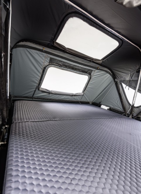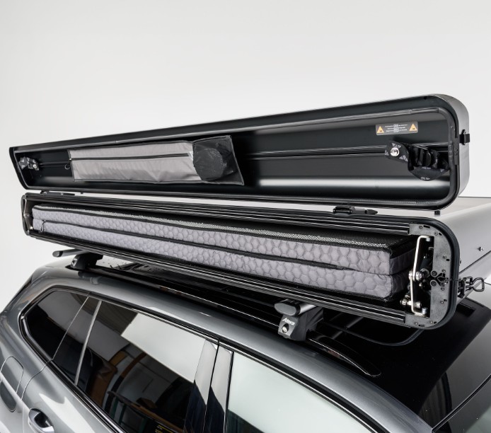 Weltneuheit FUSION: Schneller Aufbau eines Hartschalenzeltes kombiniert mit der doppelten Liegefläche eines Faltdachzeltes.